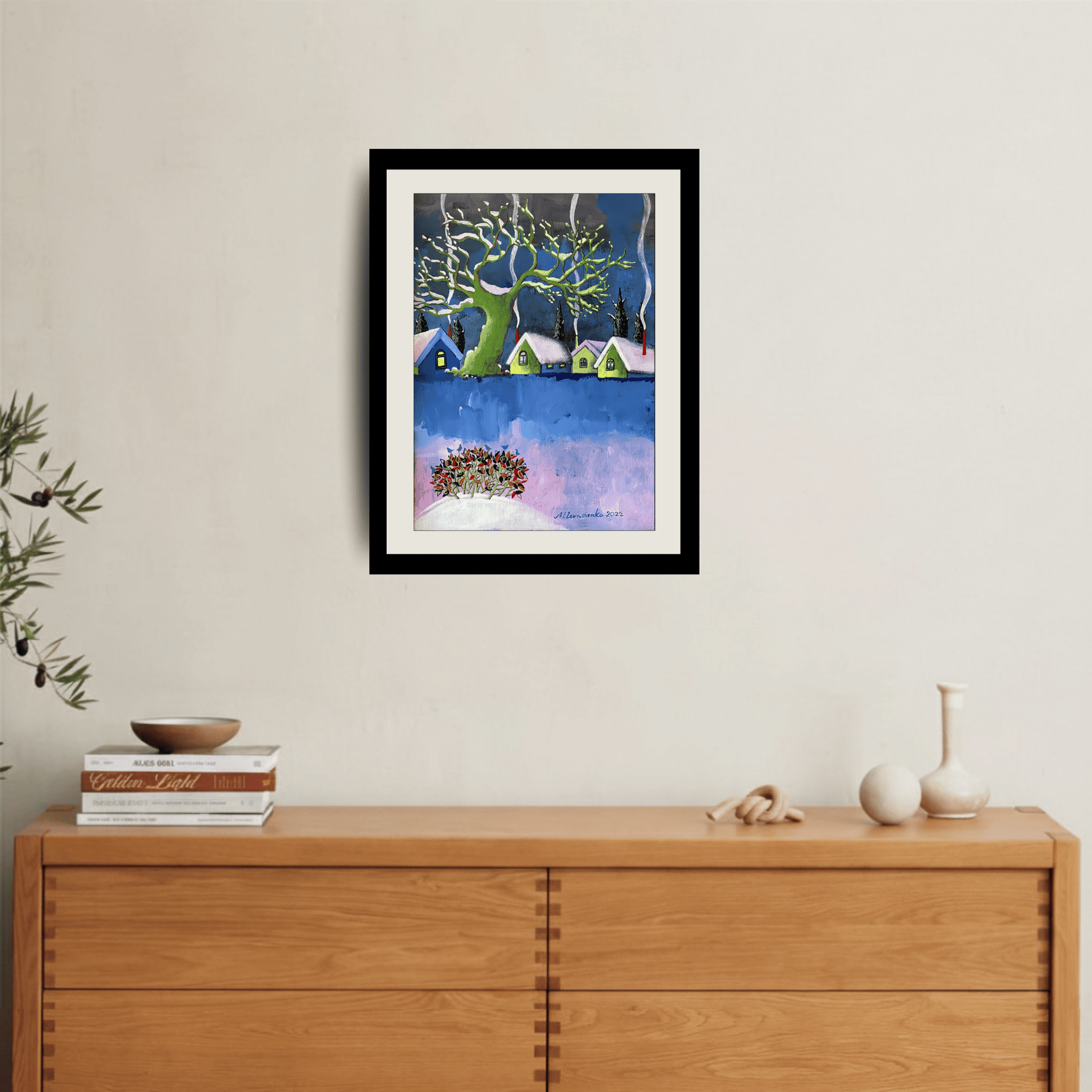 ნამუშევარს ახლავს ჩარჩო და მინა.