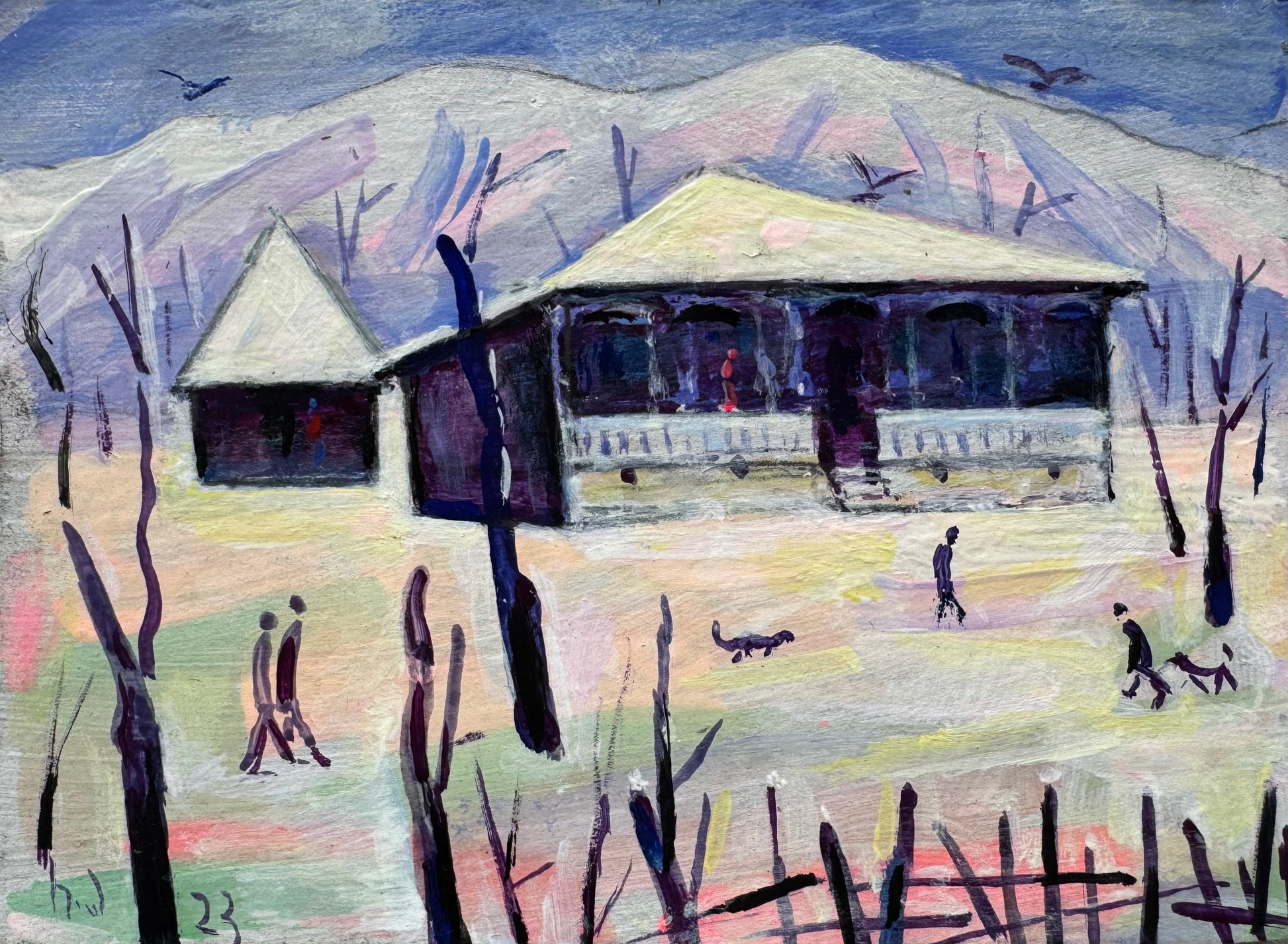 ნამუშევარს ახლავს ჩარჩო და მინა.