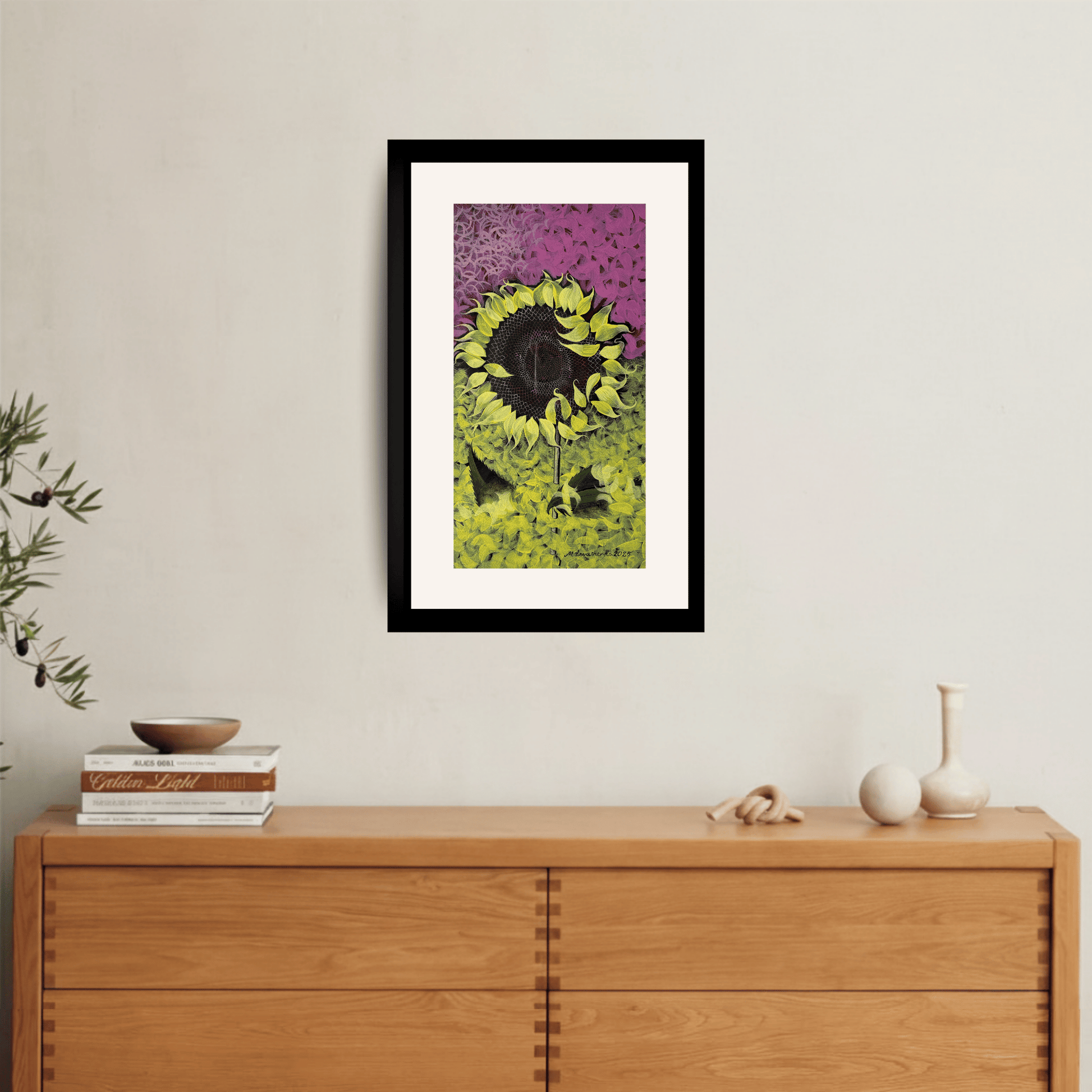 ნამუშევარს ახლავს ჩარჩო და მინა.