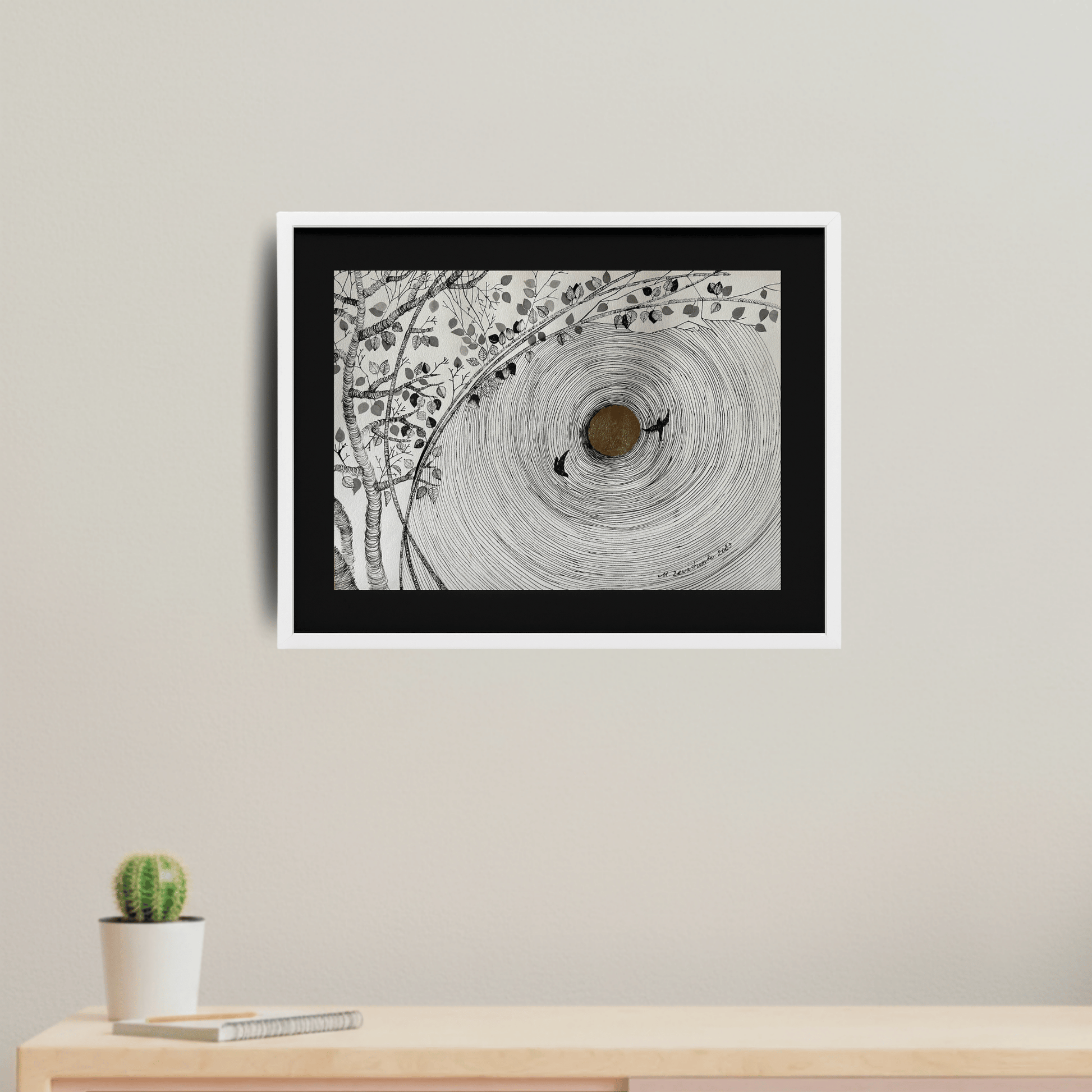 ნამუშევარს ახლავს ჩარჩო და მინა.