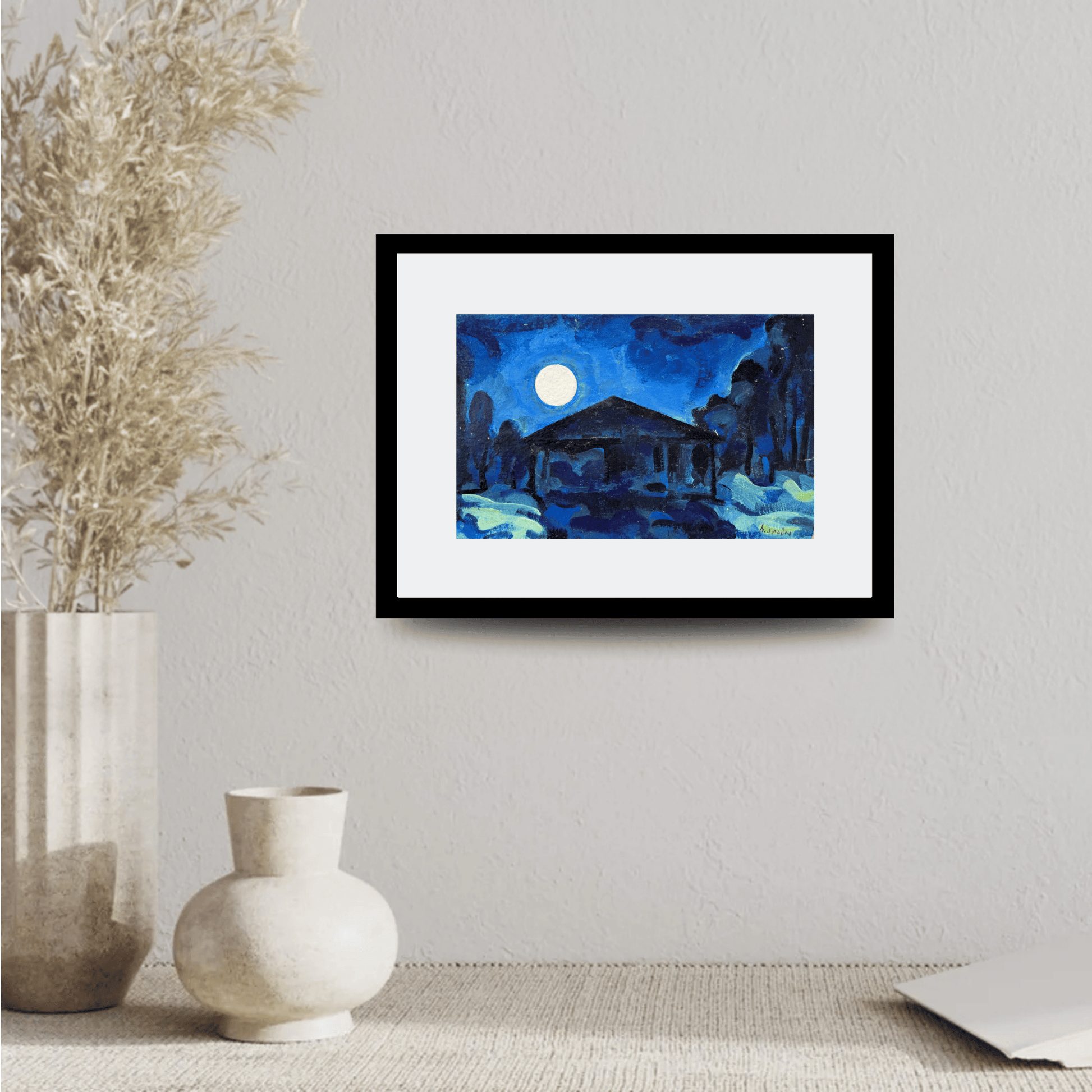 ნამუშევარს ახლავს ჩარჩო და მინა.