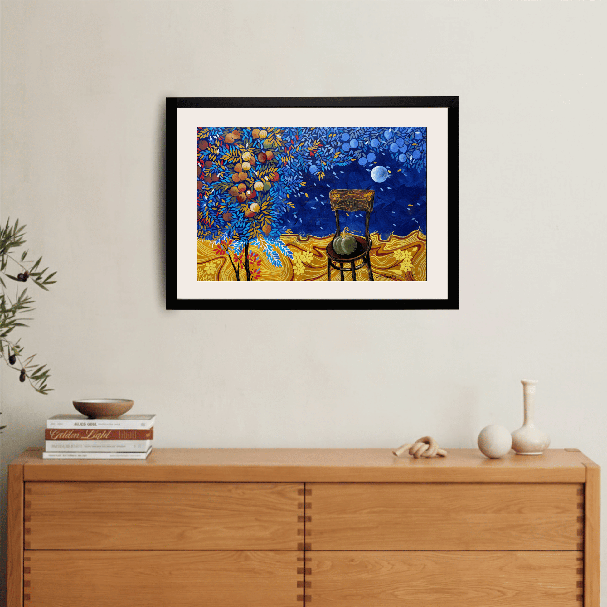 ნამუშევარს ახლავს ჩარჩო და მინა.